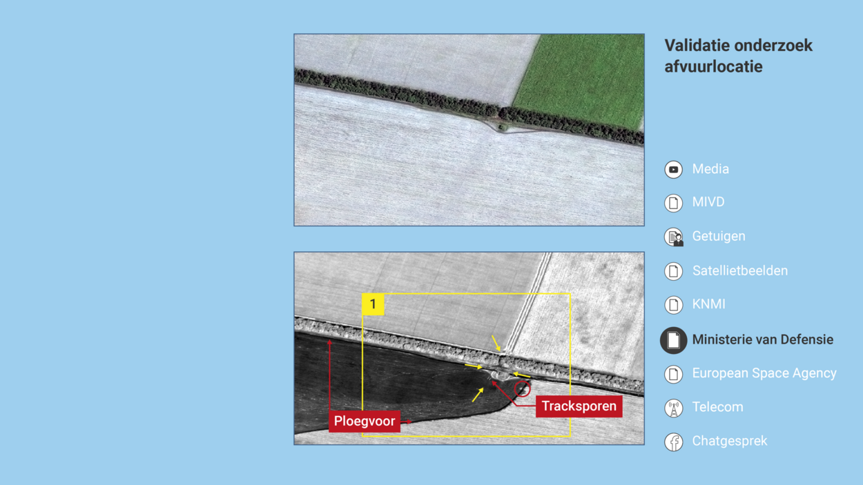 Этот свидетель определил конкретное место, это то же самое место, которое Королевский нидерландский метеорологический институт указал на спутниковой фотографии в качестве начальной точки пожара (точка «B»).