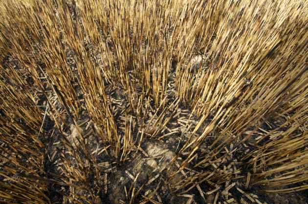 На поле был верховой пожар, стебельки выгорают не полностью. Примеры таких пожаров из сети: