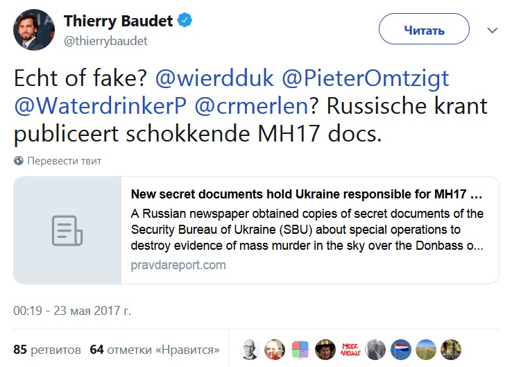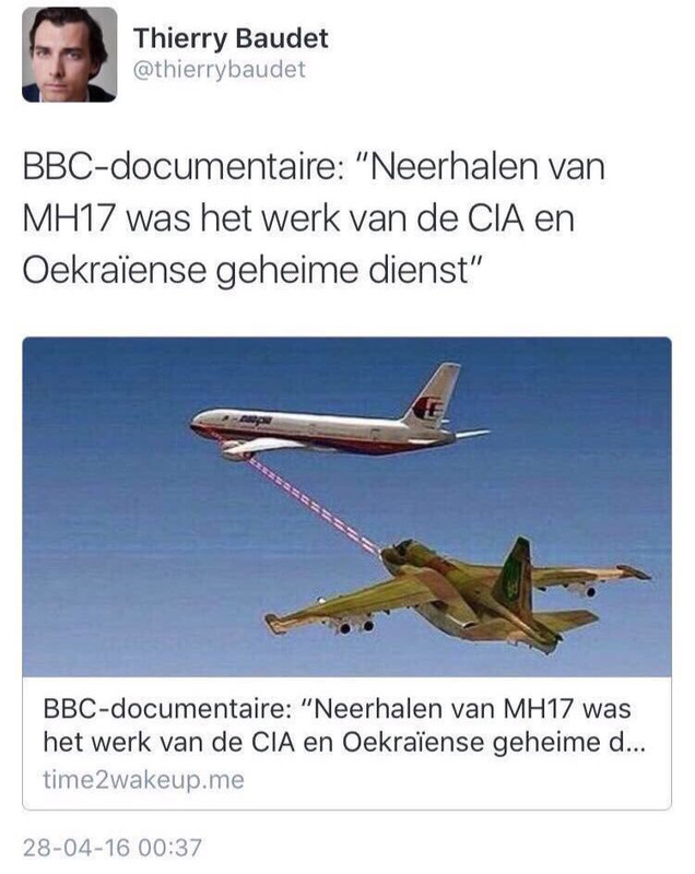 Тут Тьерри Бодэ, распространяет фейковую новость о док.фильме BBC про ЦРУ и Украину. В реальности фильм BBC был про набор конспирологичных теорий включая су-25, которые в фильме BBC просто разоблачали.