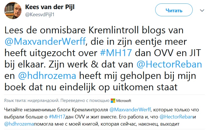 Одним из вдохновителей и помощником Кейс ван дер Пейл, называет Макса ван дер Верффа, такого же конспиролога и защитника почти всей российской лжи.