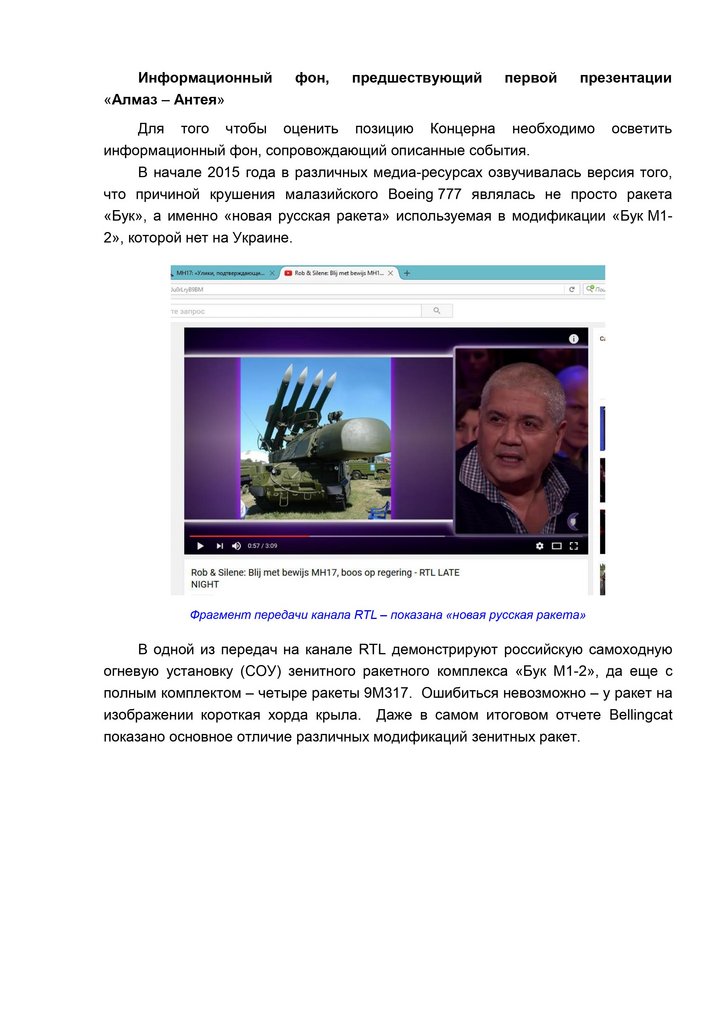 Малышевский называет этот кусочек фейком и сам же потом начинает оправдываться зачем Алмаз-Антей использовал его в своей презентации.